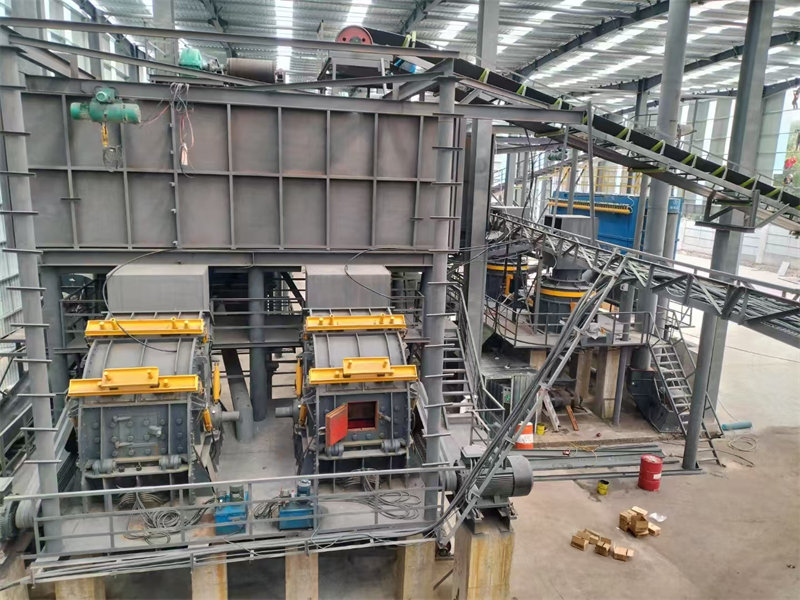 頭破采用1臺PE1200*1500顎式破碎機;二破采用2臺FKF系列反擊式破碎機、2臺FKL系列沖擊式制砂機、篩分設備采用4臺F3YK系列圓振動篩。